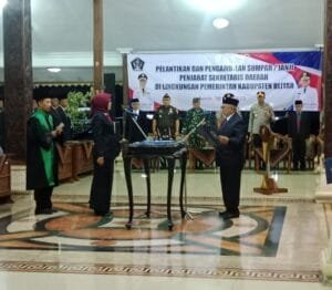 BLITAR, Siaranesia.com — Pemerintah Kabupaten Blitar kembali menunjukkan keseriusannya dalam memperkuat tata kelola pemerintahan yang efektif dan responsif. Hal ini ditandai dengan pelantikan Khusna Lindarti sebagai Penjabat (Pj) Sekretaris Daerah (Sekda) yang digelar Senin malam (30/6/2025) di Pendopo Ronggo Hadinegoro.