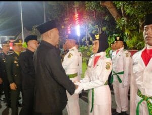 Siaranesia.TULUNGAGUNG – Malam di Pendopo Kongas Arum Kusumaning Bongso, Jumat (15/8/2025), menjelma menjadi panggung sejarah. Cahaya lampu berpadu dengan pancaran semangat muda, ketika satu per satu anggota Pasukan Pengibar Bendera Pusaka (Paskibraka) Kabupaten Tulungagung tahun 2025 berdiri tegap, bagai pelita bangsa yang siap menyalakan api merah putih di langit kemerdekaan.