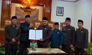Kesepakatan ini ditandatangani oleh Bupati Gatut Sunu dan Ketua DPRD Marsono, usai pembahasan intensif sejak April 2025 yang dipimpin Panitia Khusus (Pansus) 3 DPRD. Pansus tersebut diketuai oleh Fuad Ashari dengan wakil ketua Nila Kusumawardhani.